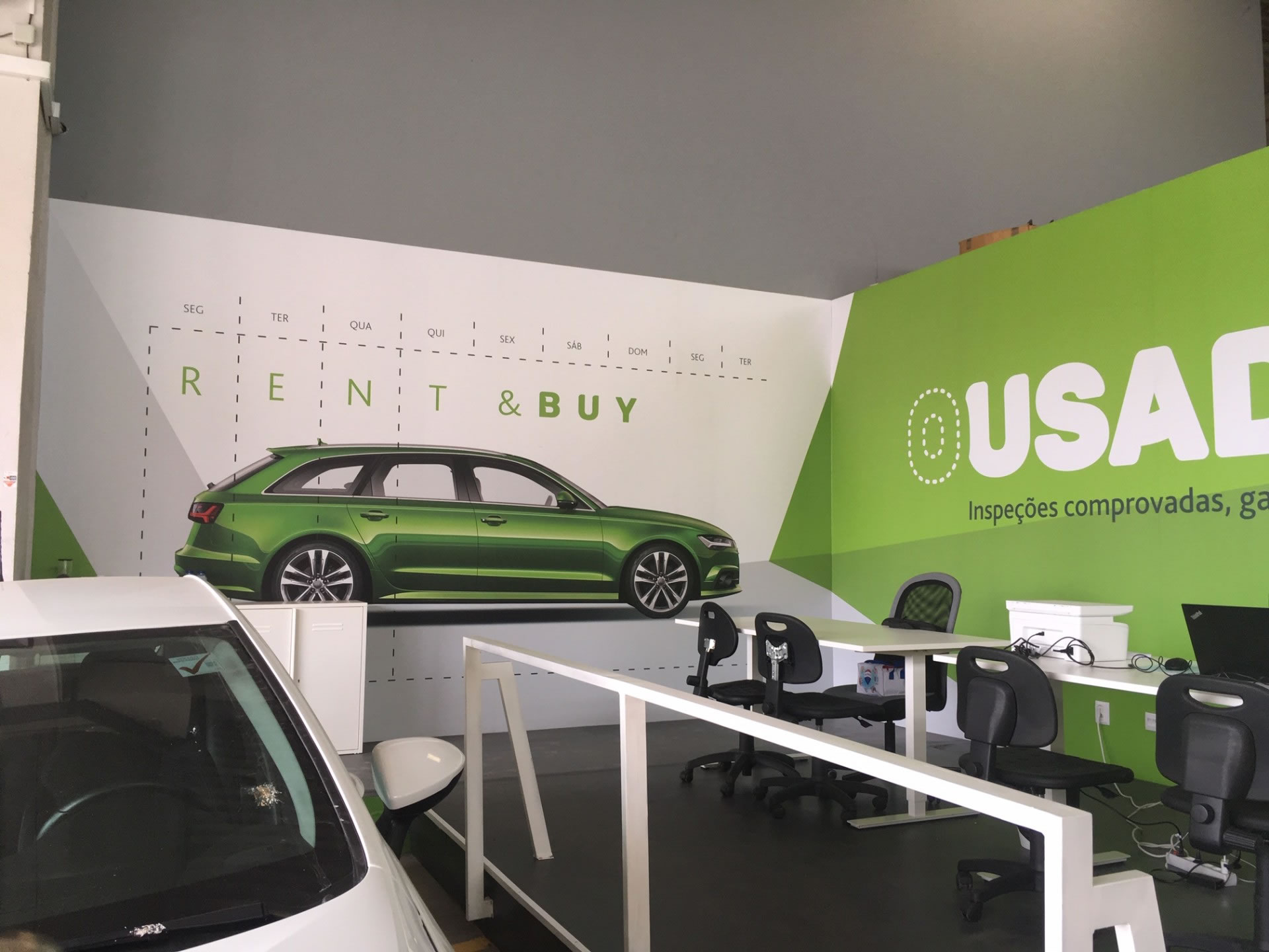 Criação da marca de venda de carros usados da Guerin. Naming, identidade visual, videos motion e decoração do espaço comercial